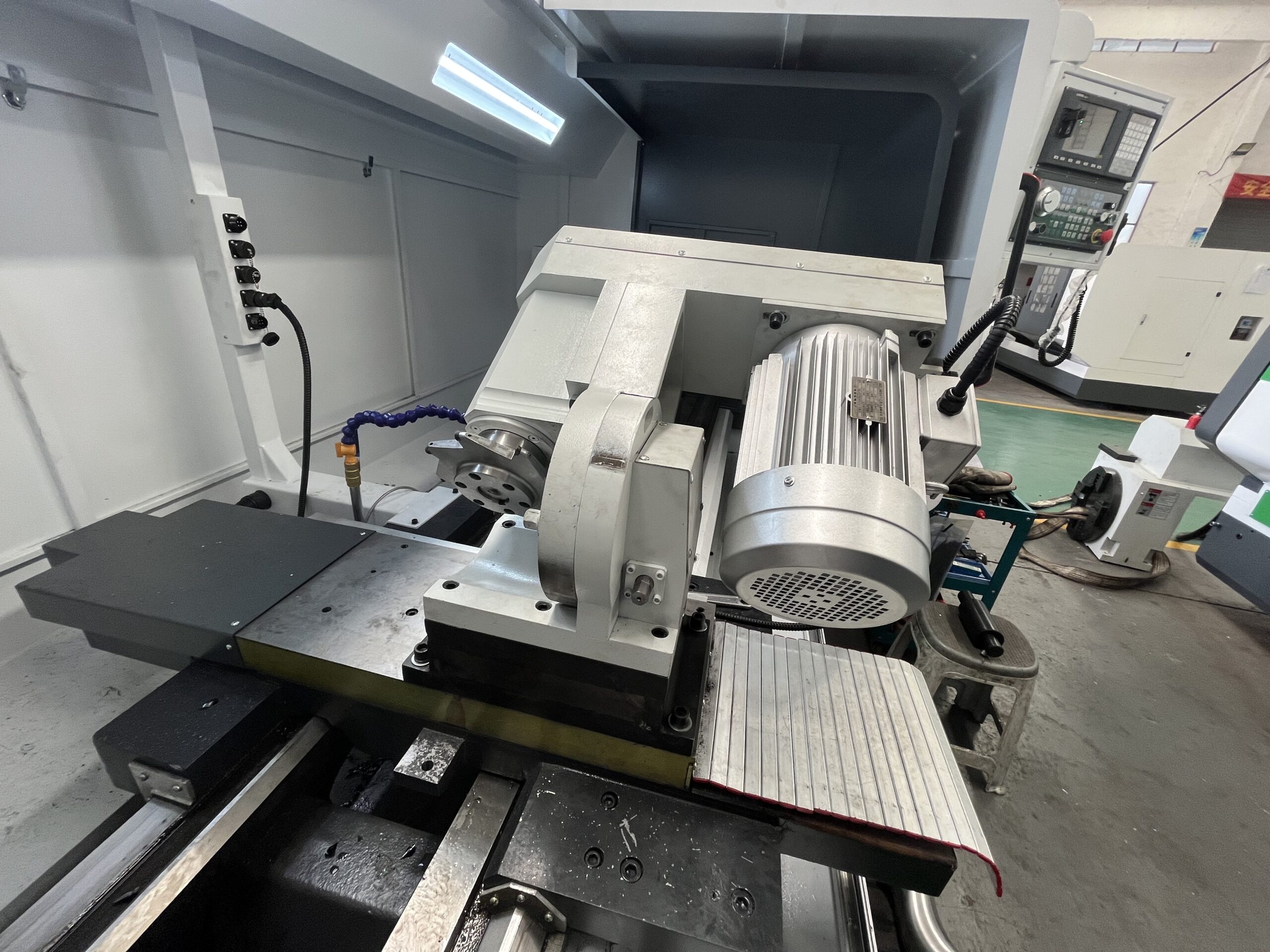 To achieve strict tolerances, the X and Z feed axes are driven by servo-controlled precision ball screws, delivering a linear positioning accuracy of ≤0.01mm and repeatability of ≤0.015mm. The C-axis spindle features a precision variable tooth thickness worm gear, allowing rapid side backlash adjustment. These mechanical elements ensure the CNC rotor whirling machine precisely executes 4-axis 3-linkage toolpaths. Workpieces are securely anchored using a 12-inch 3-jaw manual chuck combined with a robust mechanical locking hydraulic tailstock.